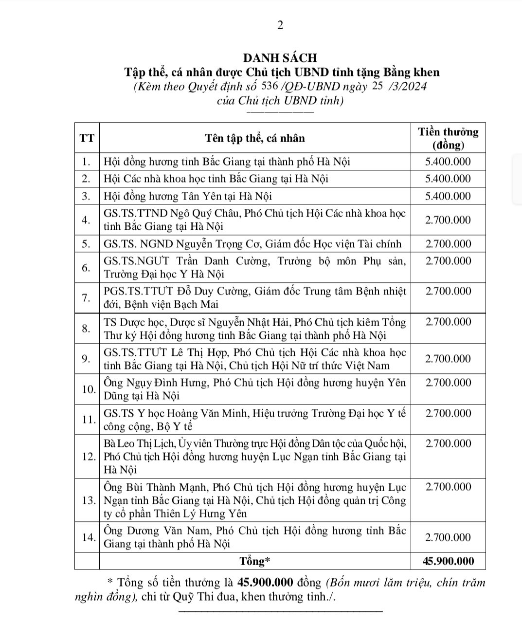 Chủ tịch UBND tỉnh tặng Bằng khen Hội các nhà khoa học tỉnh Bắc Giang tại Hà Nội, Hội đồng hương tỉnh Bắc Giang tại thành phố Hà Nội