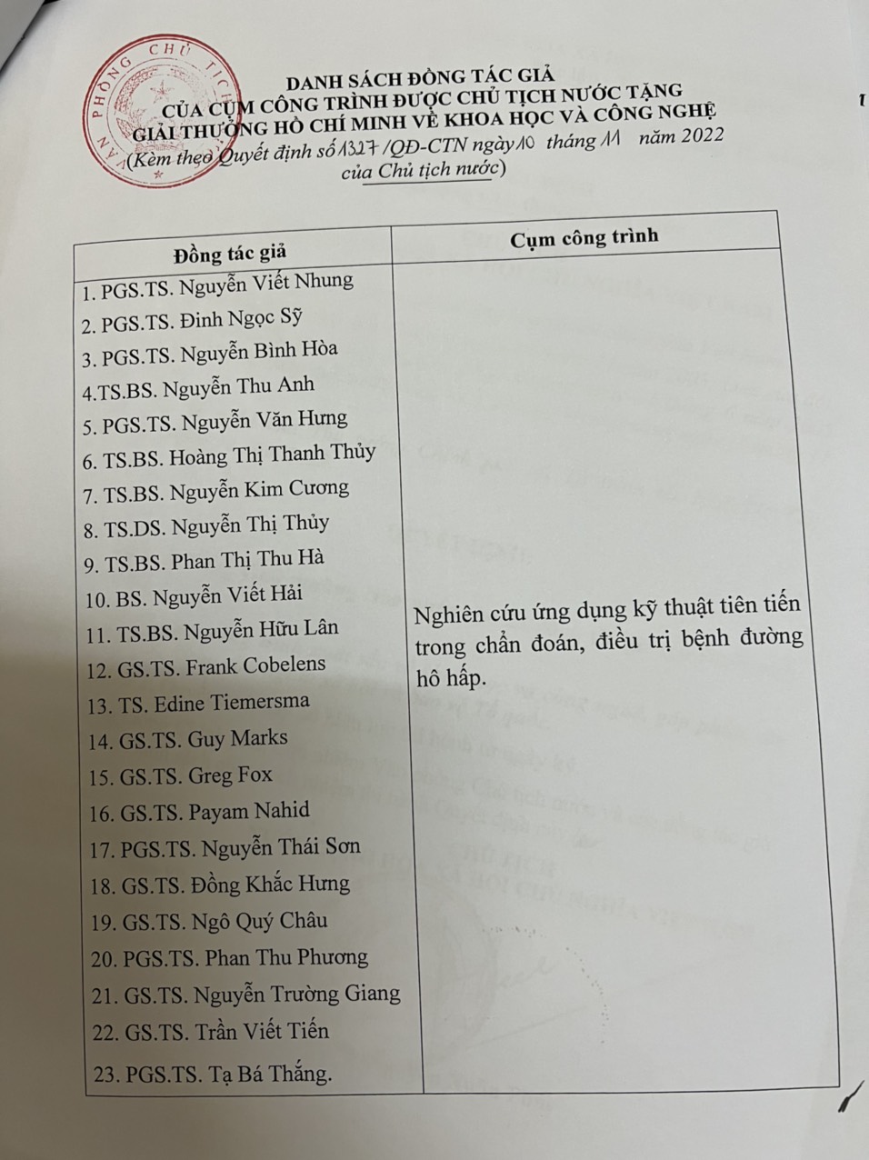 Chúc mừng GS. TS Ngô Quí Châu và các tác giả được giải thưởng Hồ Chí Mình về KH & CN năm 2022