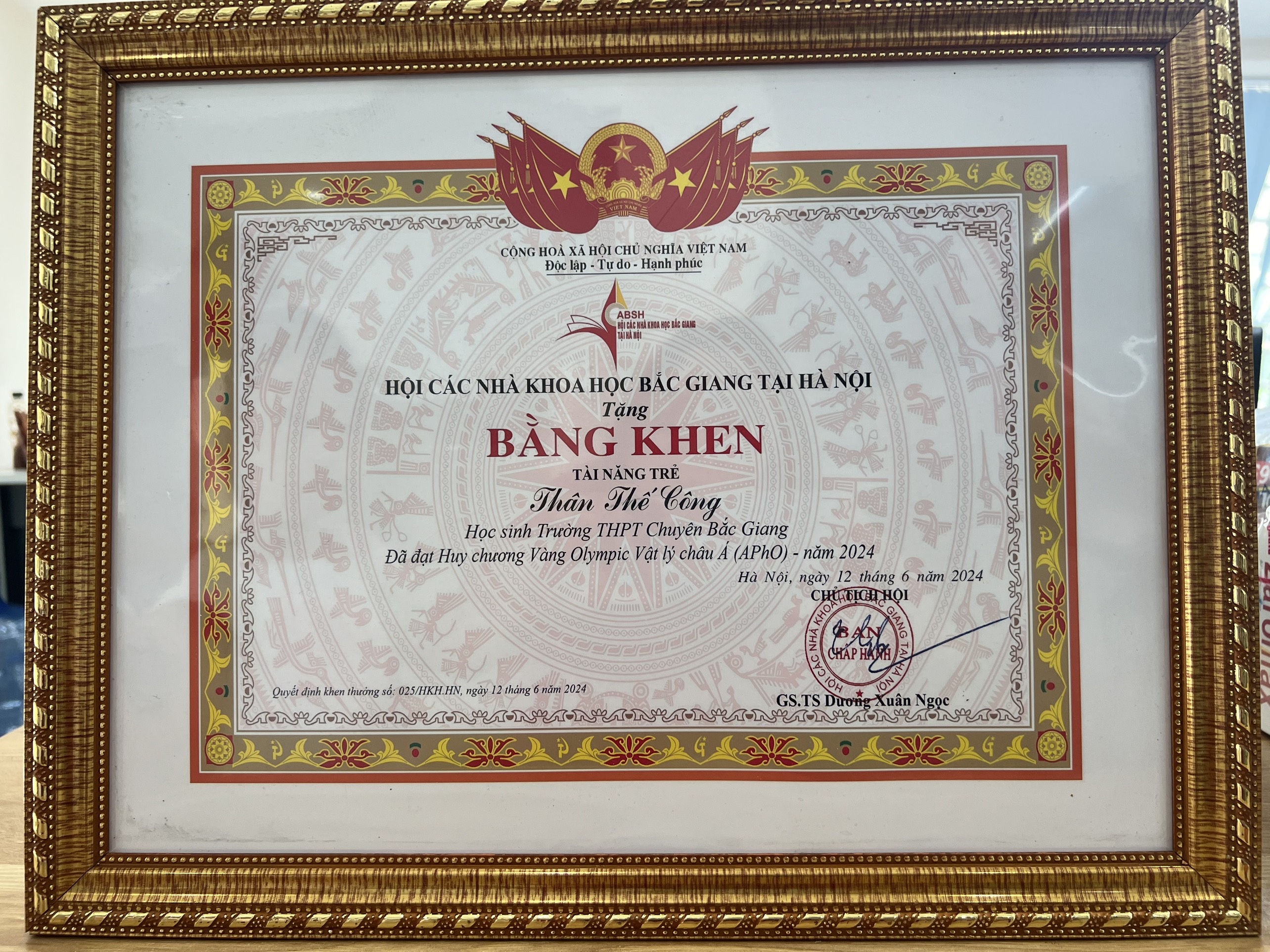 Hội khoa học Bắc Giang tại Hà Nội (Hội KHBG) Tuyên dương 2 học sinh đoạt huy chương tại cuộc thi Olympic Vật lí châu Á