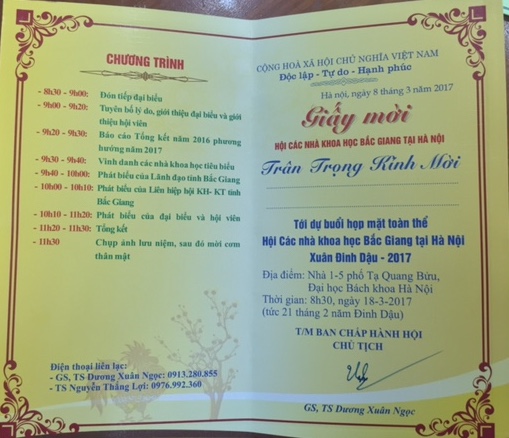 Kính đề nghị các nhà khoa học bố trí thời gian tham gia Hội nghị đồng thời chuyển thư mời đến tất cả các nhà khoa học Bắc Giang mà mình quen biết và giới thiệu để mọi người tham gia Hội.
